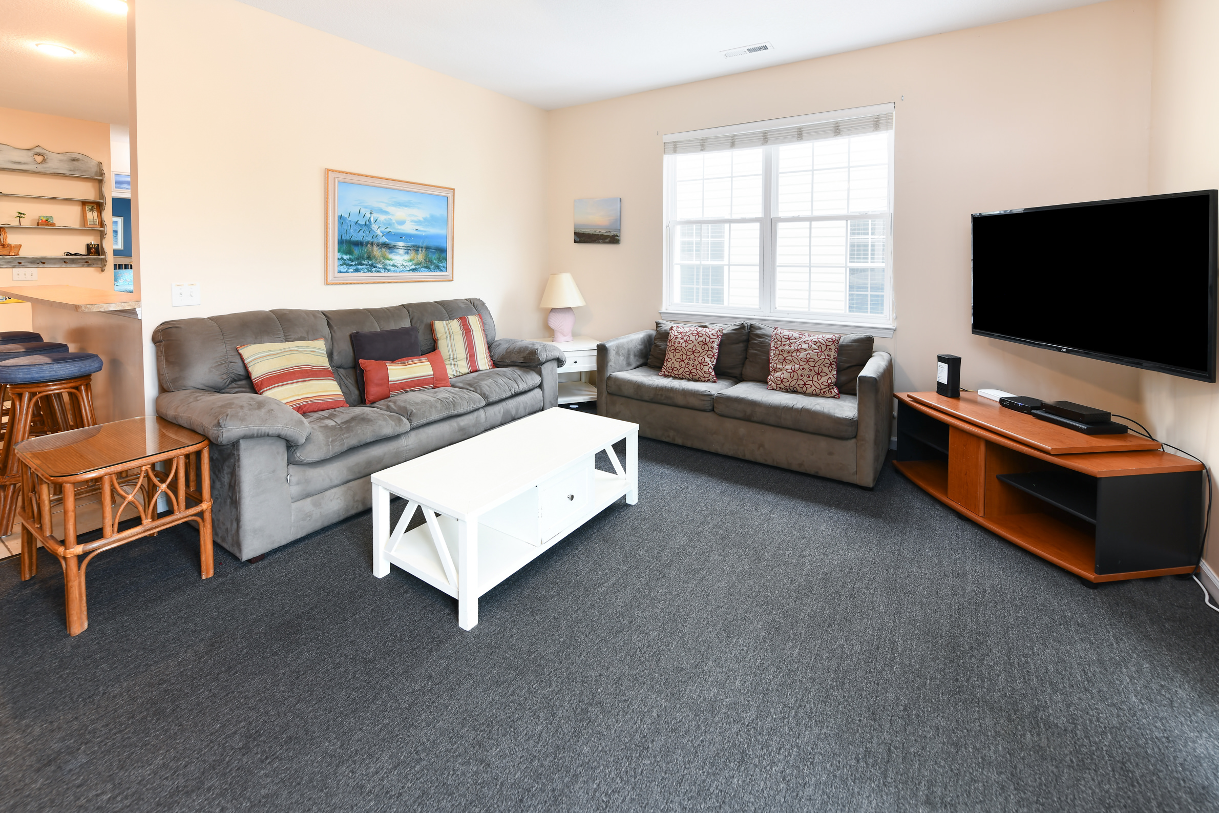 All rooms and common area carpets get professionally cleaned prior to the summer season. NEW for this 2024 Season Beachview North (Yankees) has all new flooring in the upstair Bedrooms and Hallway. You will see Luxury Vinyl Planks (LVP). We hope to make this change in the Beachview South RedSox next season. Also new for 2023 we have redone the parking area below the house and the entrance into the home with NEW vinyl Soffet Ceilling and White Vinyl Siding entering the house. For reference the Beachview North (Yankees) side has a blue door and blue hand rails and Beachview South (Red Sox) has a RED Door and Red HandRails. We added nice river rock look to both sides of the house PICTURE of Yankee Side attached.