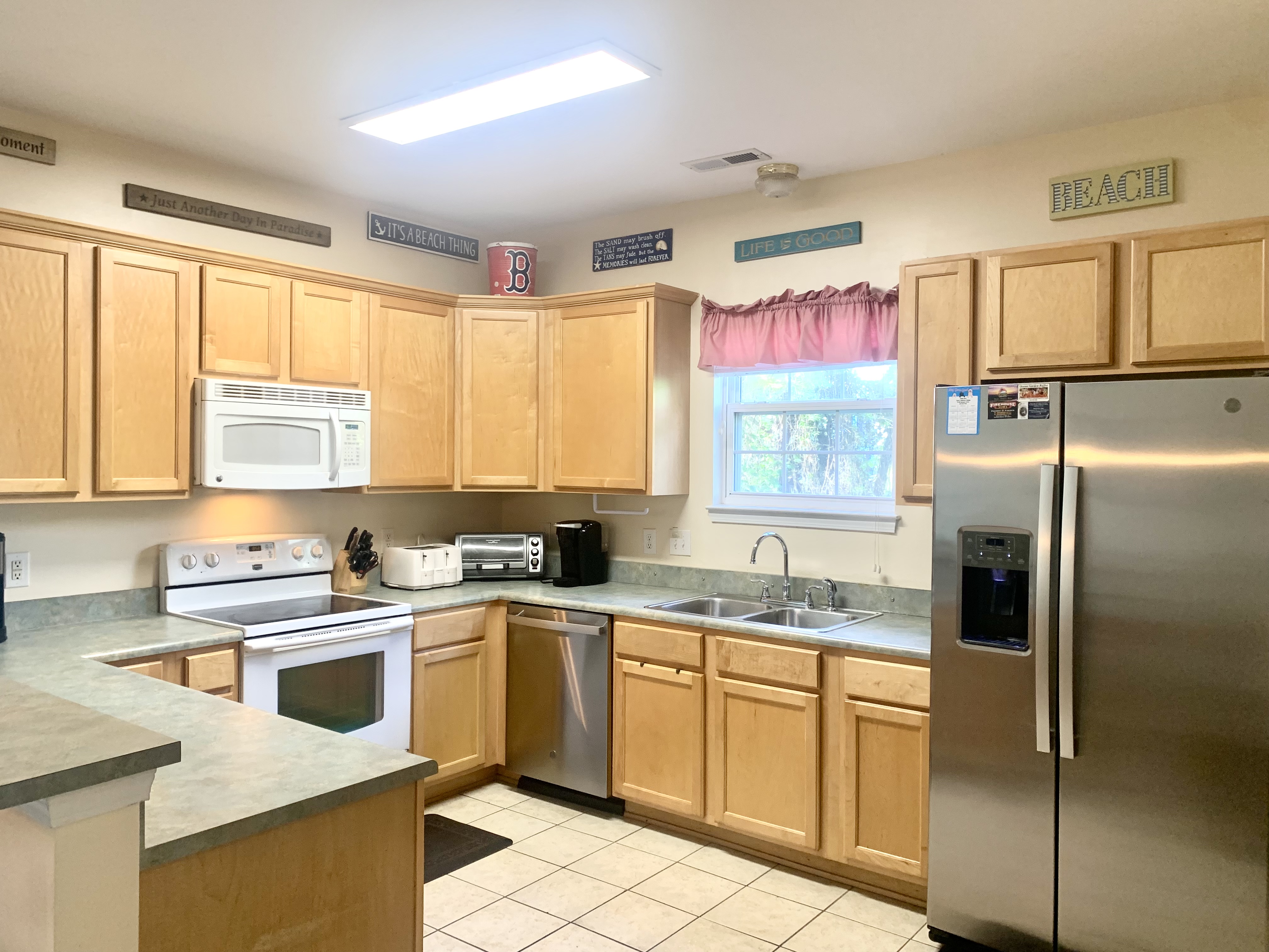Kitchen Supplies and equipment. I really try to have a fully stocked kitchen with everything that you would ever want in your kitchen. Inevitably I miss something or it disappears from the start of the season. Beachview South (Red Sox) has most things labeled, I ask that you do your best to return all equipment to its proper spot. For those of you that are renting both sides I ask that you be very careful to not intermingle things from one side to the other. Yankee stuff and Red Sox stuff don’t like each other. I also have purchased a NEW Stainless Steel Refrigerator for the Yankee side. Please do not change the temperature control of the refrigerators, in the past folks would lower the temperature and cause more trouble. Anything that is left in the cabinets from week to week feel free to use. Pepper, Salt , Coffee, Pancake Mix, Chips Condiments. Both refrigerators have ICE MAKERS. The Red Sox side has a new High Capacity Washing machine. The Yankee side has a brand new Oven this year in 2021.