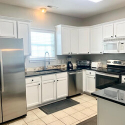 Internet, Televisions, Heat & Central A/C, Ceiling Fans Throughout, Washer & Dryer, Range & Oven, Refrigerator, Dishwasher, Iron & Ironing Board, Basic Kitchen Amenities. All bedding will have a mattress cover, pillows and comforter or bedspread. We also provide a small bar of soap at each sink, one roll of toilet paper in each bathroom, and a trash bag in each trashcan. Guests should be prepared to provide any of these items as needed beyond what we supply. Guests are also responsible for providing detergents, spices, salt & pepper, sugar, etc as needed.